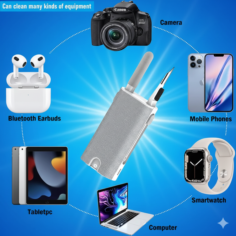 The kit is designed for a wide range of devices, including smartphones, earbuds, tablets, laptops, keyboards, TVs, and more. It’s safe for screens, ports, and delicate surfaces.